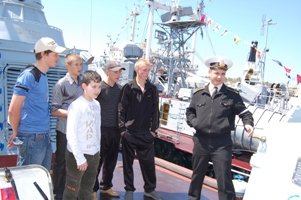 Под впечатлением от увиденного, мы двинулись к следующему пункту нашего маршрута – Стрелецкой бухте. Здесь, в бригаде надводных кораблей, нас ожидали новые сюрпризы – экскурсии на ударные катера «Каховка» и «Прилуки» и на ударный корвет «Приднепровье». Ребята с огромным интересом слушали рассказ экскурсовода, после чего у них возникала масса дополнительных вопросов, на которые они получали исчерпывающие ответы.