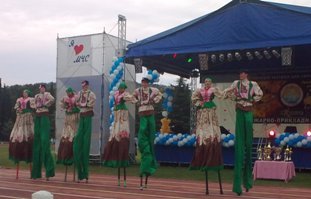 После приветствий, поздравлений именинников-спортсменов, гимна Украины и поднятия флага страны, зрители посмотрели выступления Евпаторийского шоу-балета «Театр на ходулях» и артистов Крымского института культуры и туризма.