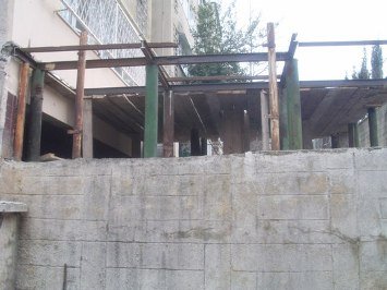 Фрунзенское шоссе, 15: начинается пристройка; по фундаменту видно, что запланирована как минимум квартира. Выдержит ли подпорная стена дома дополнительную нагрузку?