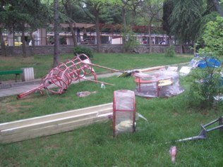 Детская площадка, которую сегодня только привезли и выгрузили, расположится в Приморском парке недалеко от Ротонды. Также, по просьбе городского руководства, перед зданием исполкома сувенирщики скоро установят альпийскую горку. По словам самих предпринимателей, они благоустраивают город с удовольствием, т.к. власть пошла им навстречу и выделила торговые места на ул. Ленина.